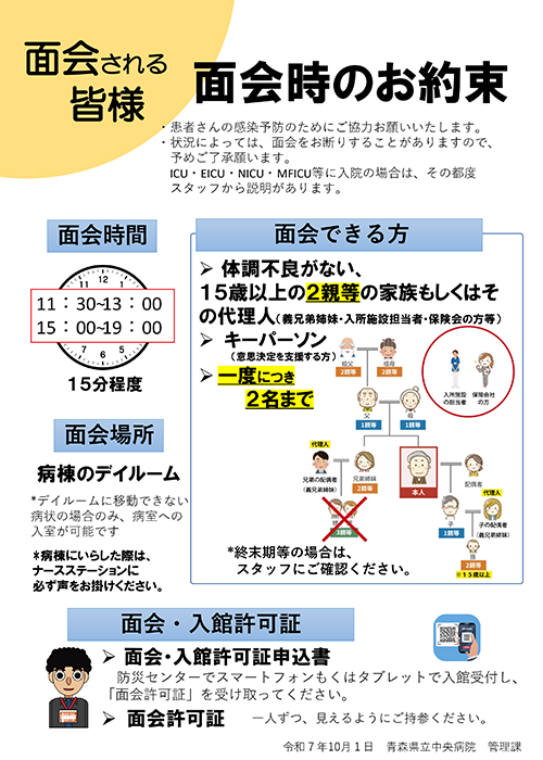 患者さんの状態によっては、面会をお断りすることがありますので予めご了承願います。