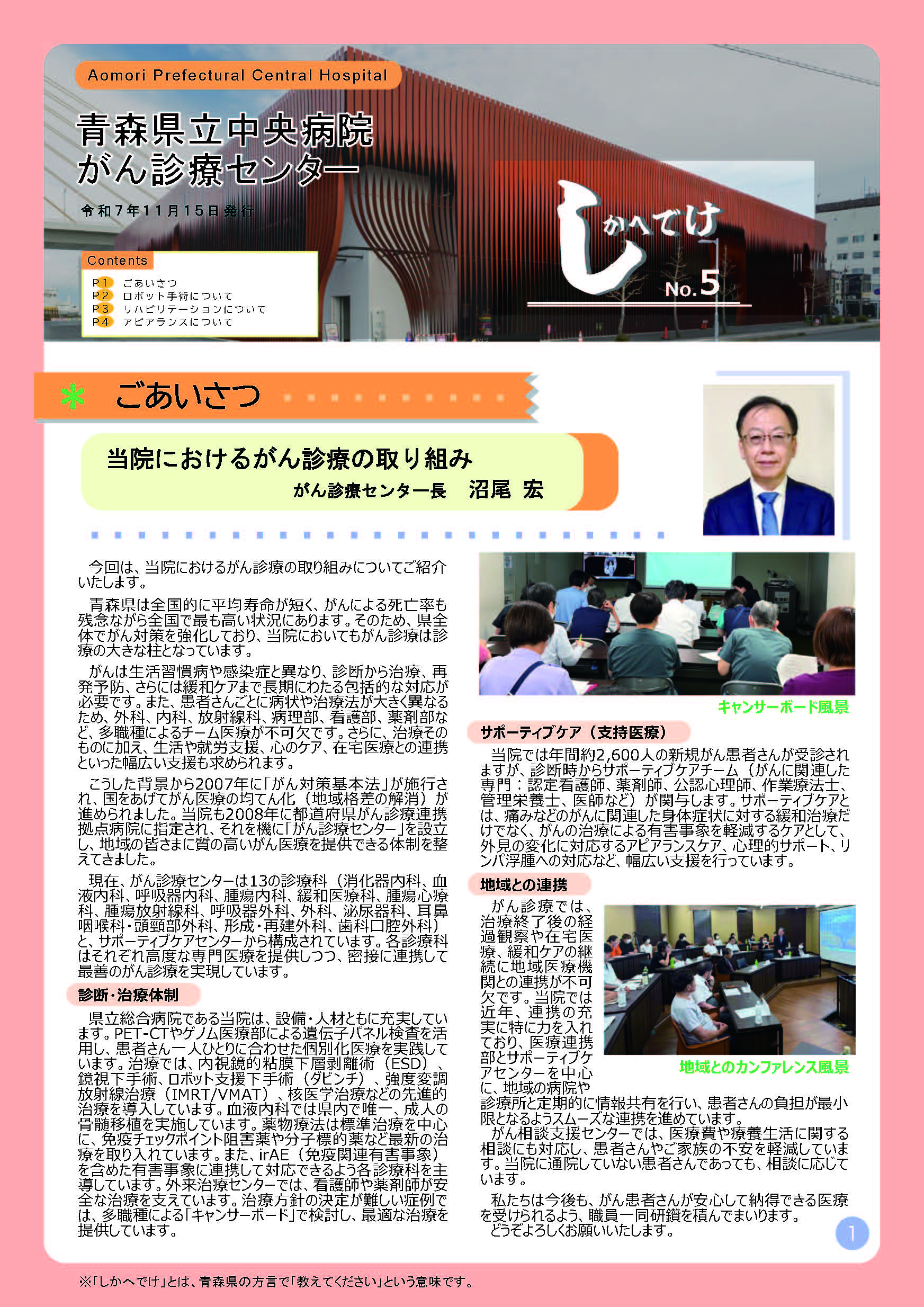 広報誌「青森県立中央病院がん診療センター『しかへでけ』」