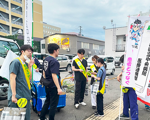 8月3日は廣田院長、6日は大山病院事業管理者と廣田院長を筆頭に、当院からは看護師、医療技術職員や事務職員、つくしが丘病院からは医療連携室や訪問看護ステーションのスタッフが参加しました。