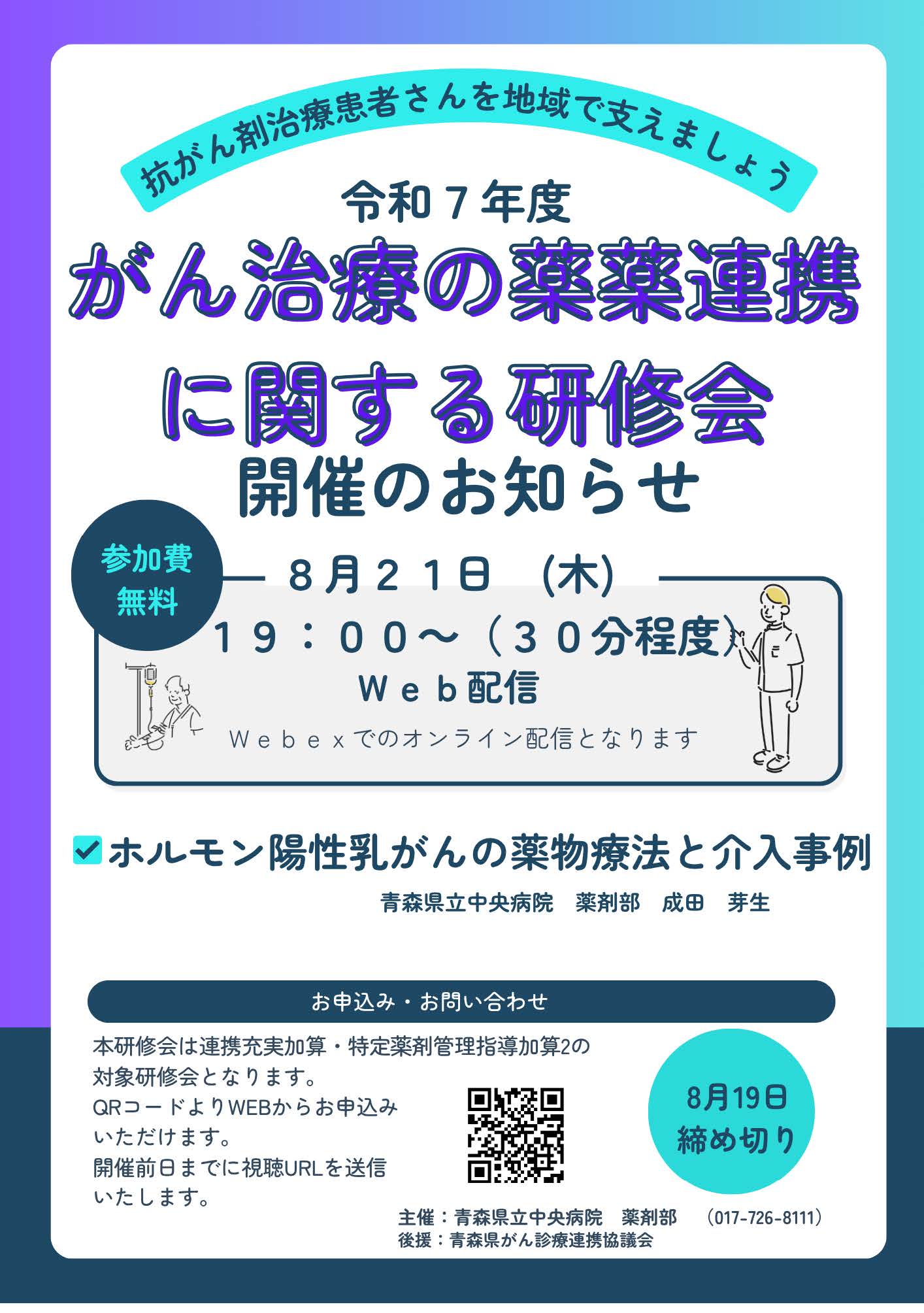 「令和7年度 がん治療の薬薬連携に関する研修会」開催のお知らせ