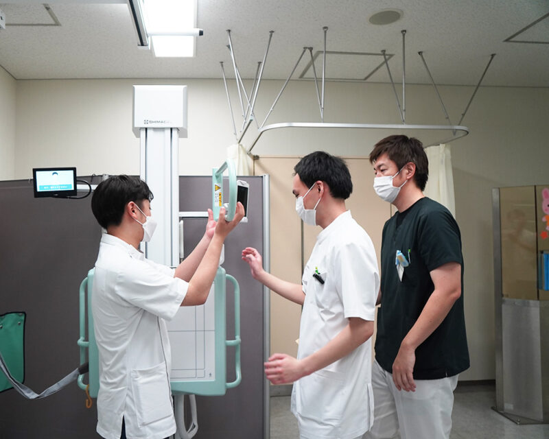 - 撮影法などスタッフのみなさんから丁寧に教えてもらい、とても充実した実習だった。実際にポジショニングなどさまざまなことを体験できて楽しかった。