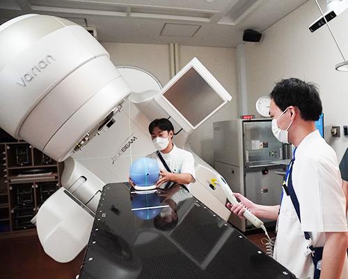 放射線治療における治療計画から治療開始までの流れを実習を通して学ぶことができます。