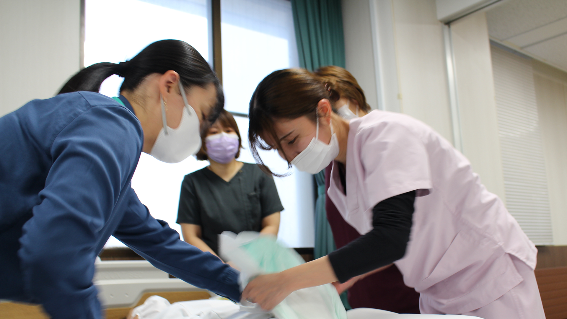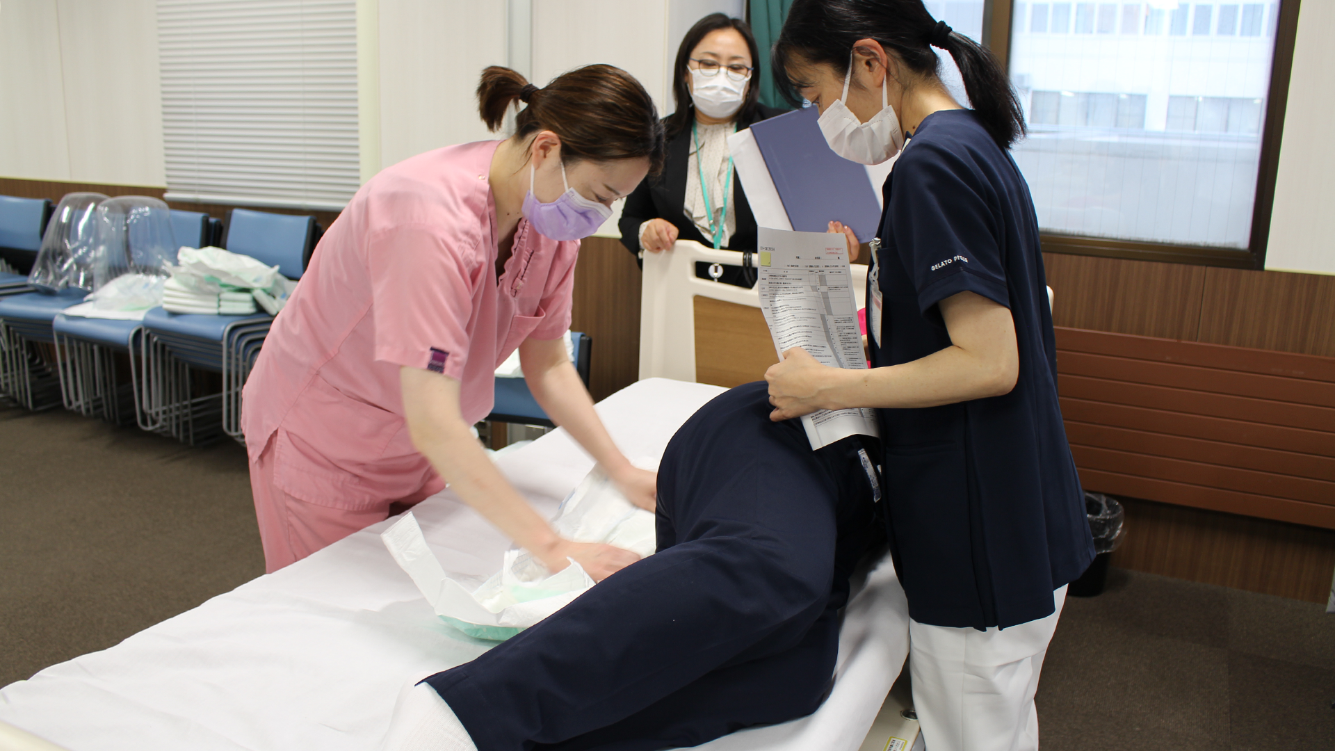 - 患者さんが不快にならないような正しいあて方ができるようになり、今後は他スタッフにも指導できるようなおむつマイスターになりたいです。